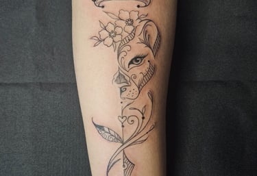 Criação de tatuagens únicas que refletem sua personalidade com carinho e criatividade.